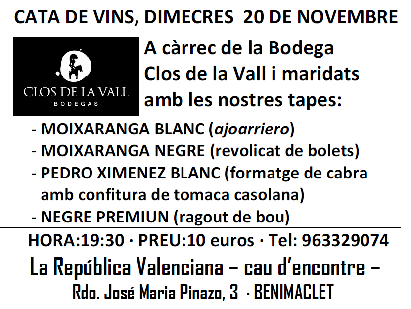 NotíciesTasta de vins a La República Valenciana -cau d’encontre – 20 de novembre de 2013 ANNA Deixa un comentari